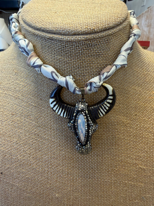 Cow Skull Scarf Necklace